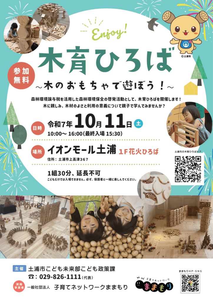 news イベント 木育ひろば~木のおもちゃで遊ぼう!~ 2025年9月29日2025年9月29日 staff 木育ひろば~木のおもちゃで遊ぼう!~ 日時:令和7年10月11日 土曜日 10:00~16:00(最終入場15:30) 場所:イオンモール土浦1F花火ひろば 【 詳細はこちら! 】